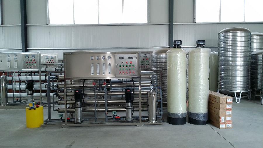 3、三級預處理係統:采用陽離子樹脂軟化水,主要是降低水的硬度,除去水分中鈣鎂離子(結垢的主要成分)能增加反滲透膜的使用年限。